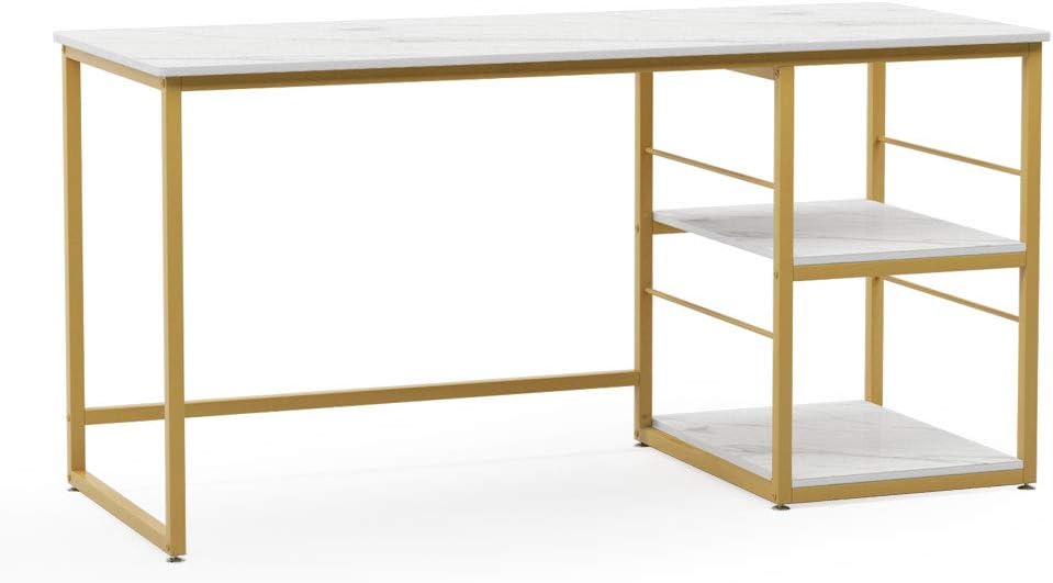 Tribesigns 47 Inch Computer Desk With 2 Tier Storage Shelves Faux Marble Modern Home Office Desk Study Table Studying Writing Desk Workstation For Home Office Black And Gold Kitchen Dining Dprd Tasikmalayakab Go Id , It Can Add Some Organization To Your Space Without Sacrificing Style.it Has.