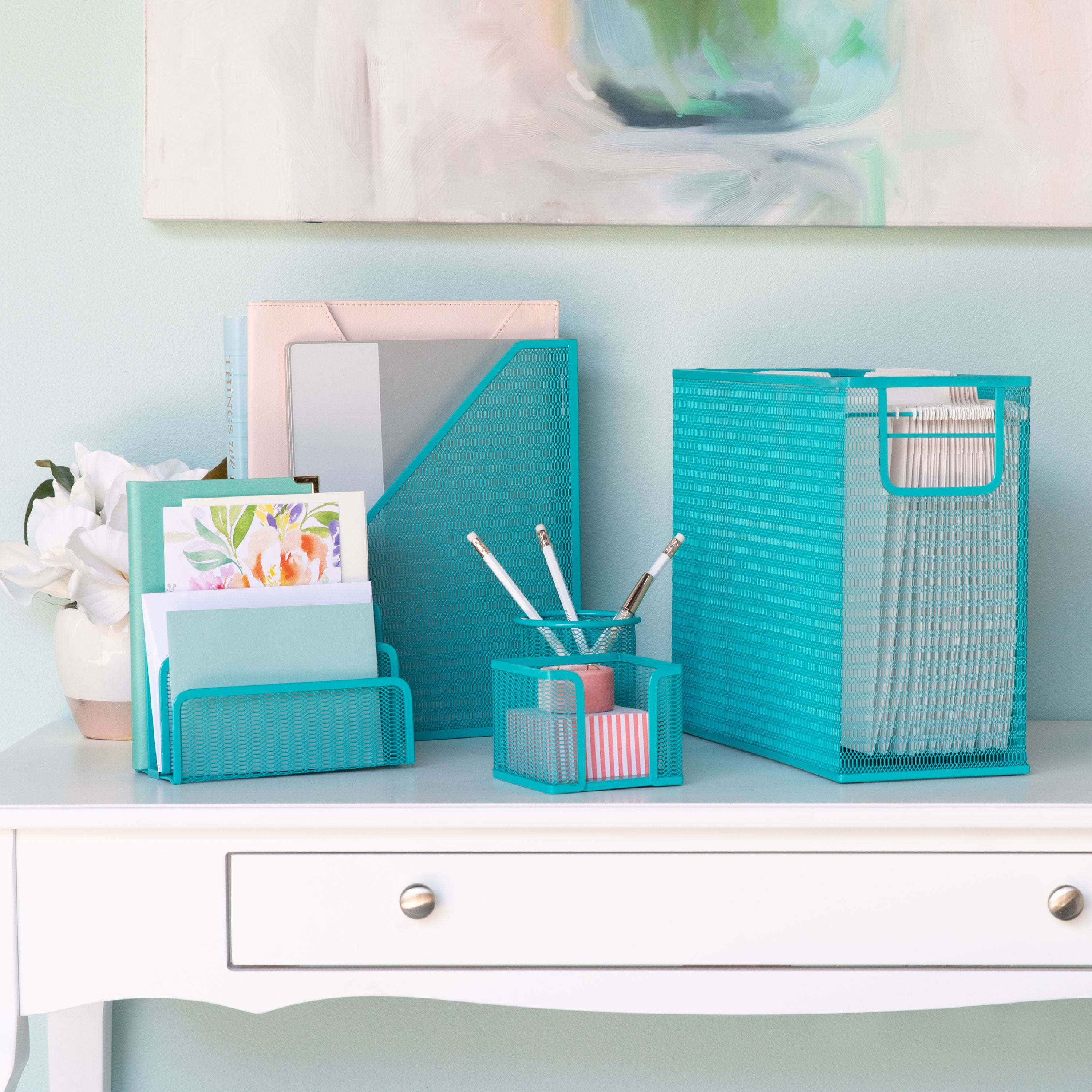 Blu Monaco 5 Piece Cute Office Supplies Aqua Desk Organizer Set With Desktop Hanging File Organizer Magazine Holder Pen Cup Sticky Note Holder Letter Sorter Aqua Desk Accessories Amazon Sg Office - World literature pencil pen tray by bookfriends.