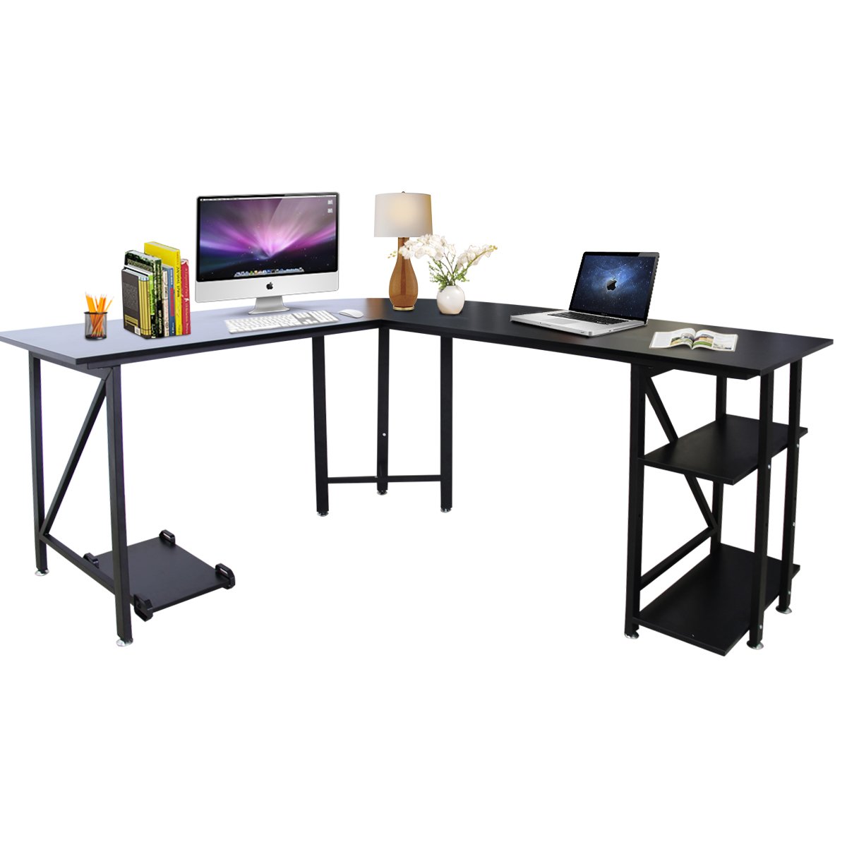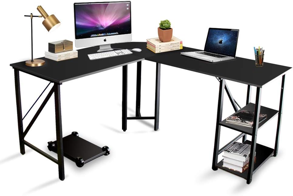 Amazon Com Reversible L Shaped Desk Home Office Desk With Round Corner Coleshome Computer Desk With Large Monitor Stand Pc Table Workstation Black Kitchen Dining . Free Shipping On Orders Of $35+ And Free Store Pickup.