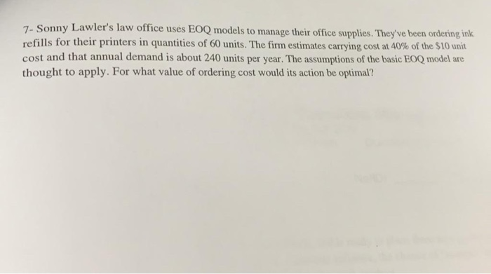 Solved 7 Sonny Lawler S Law Office Uses Eoq Models To Ma Chegg Com . Office Supplies Are The Traditional Office Items, Like Pens, Staplers, Paper Clips, Usb Thumb Drives, And Also Included In Office Supplies Are:
