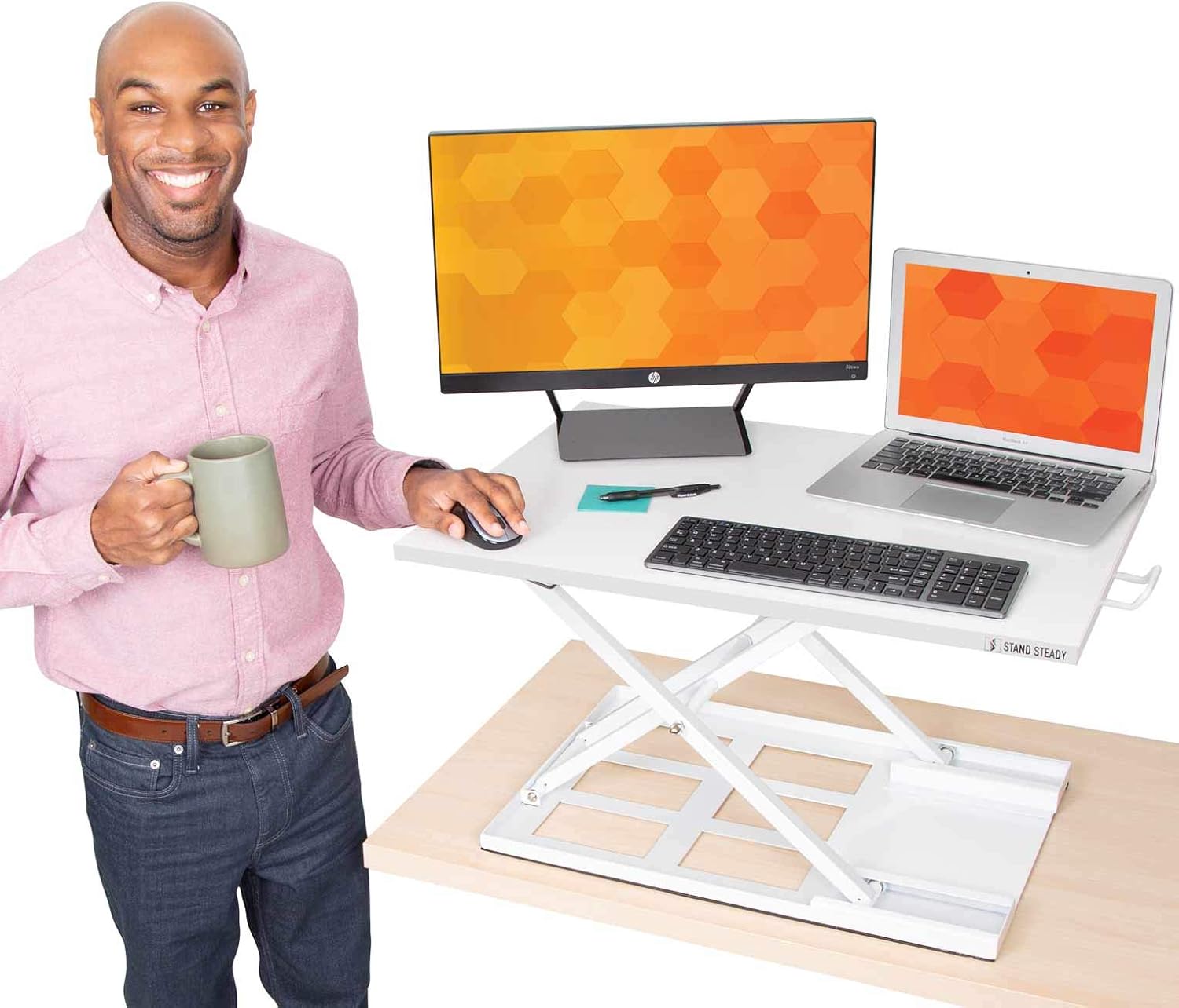 Amazon Com Stand Steady Mega Standing Desk Stand Up Desk Topper Instantly Convert Any Surface To A Standing Desk Easy Assembly No Tools Required Largest Desk Converter 39 5 X 22 - Flexispot Stand Up Desk Converter 28 Inches Standing Desk Riser, Height Adjustable Home Office Desk With Deep Keyboard Tray For Laptop (M7B).