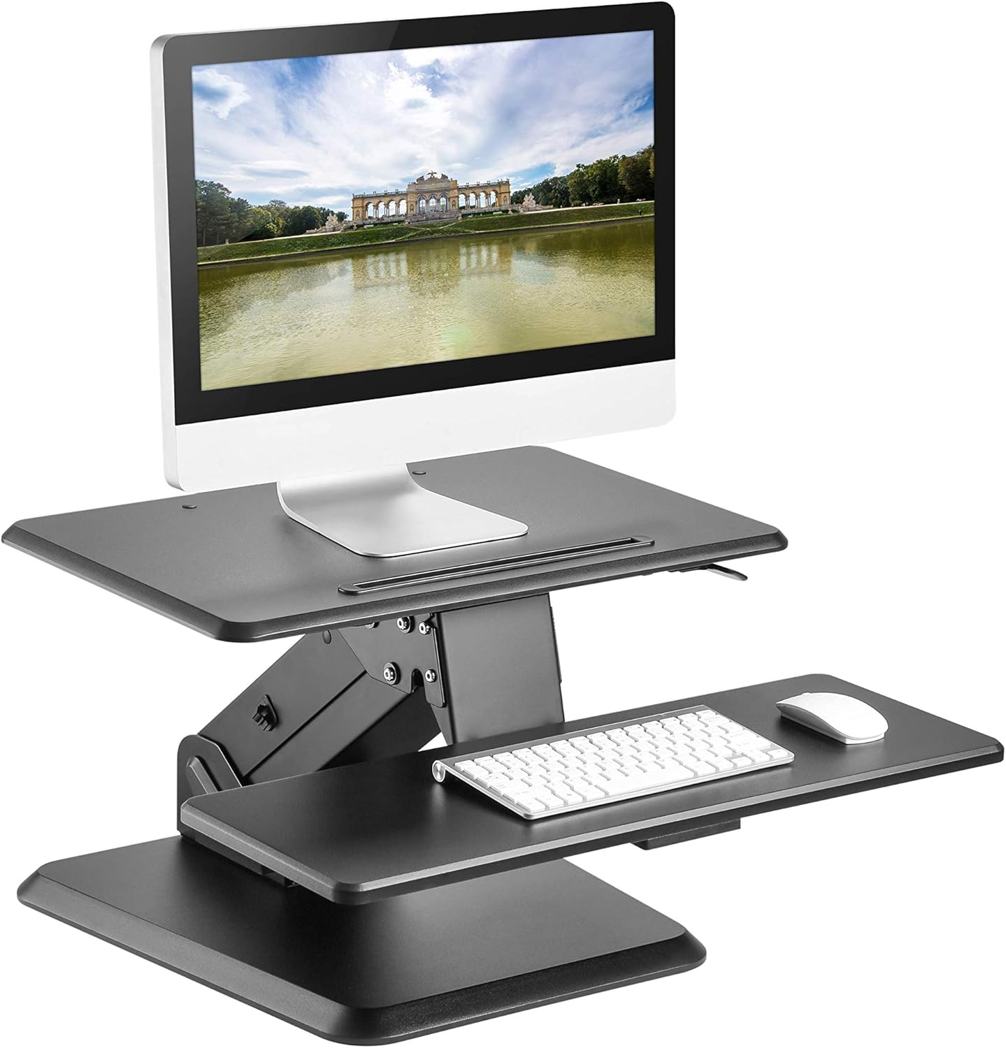 Amazon Com Seville Classics Airlift Height Adjustable Stand Up Desk Converter Riser Keyboard Tray Dual Monitors Quick Lift Levers Ergonomic Table Full 36 Black Furniture Decor - Ich Habe Meinen Etwas Größeren Pc Untertisch Montiert, Auch Hier Liefert Amazon Das Gewünschte Produkt.