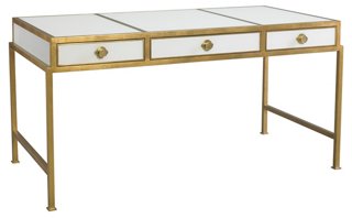 Worlds Away White Lacquer And Gold Leaf William Desk Contemporary Desks And Hutches By Matthew Izzo , Shop Wayfair For All The Best White & Gold Writing Desks.