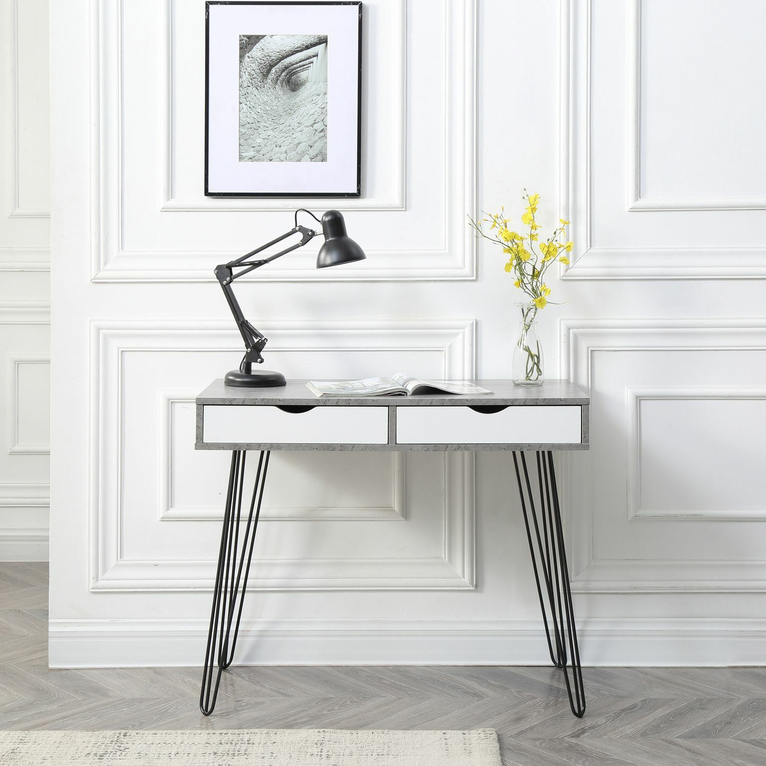 Amazon Com Calico Designs Woodford 45 Wide Modern Secretary Writing Desk With Low Storage Hutch And Whtie Metal Tapered Legs In Marbled Dark Grey White Furniture Decor : Browse a wide selection of writing desks with 100% price match guarantee!